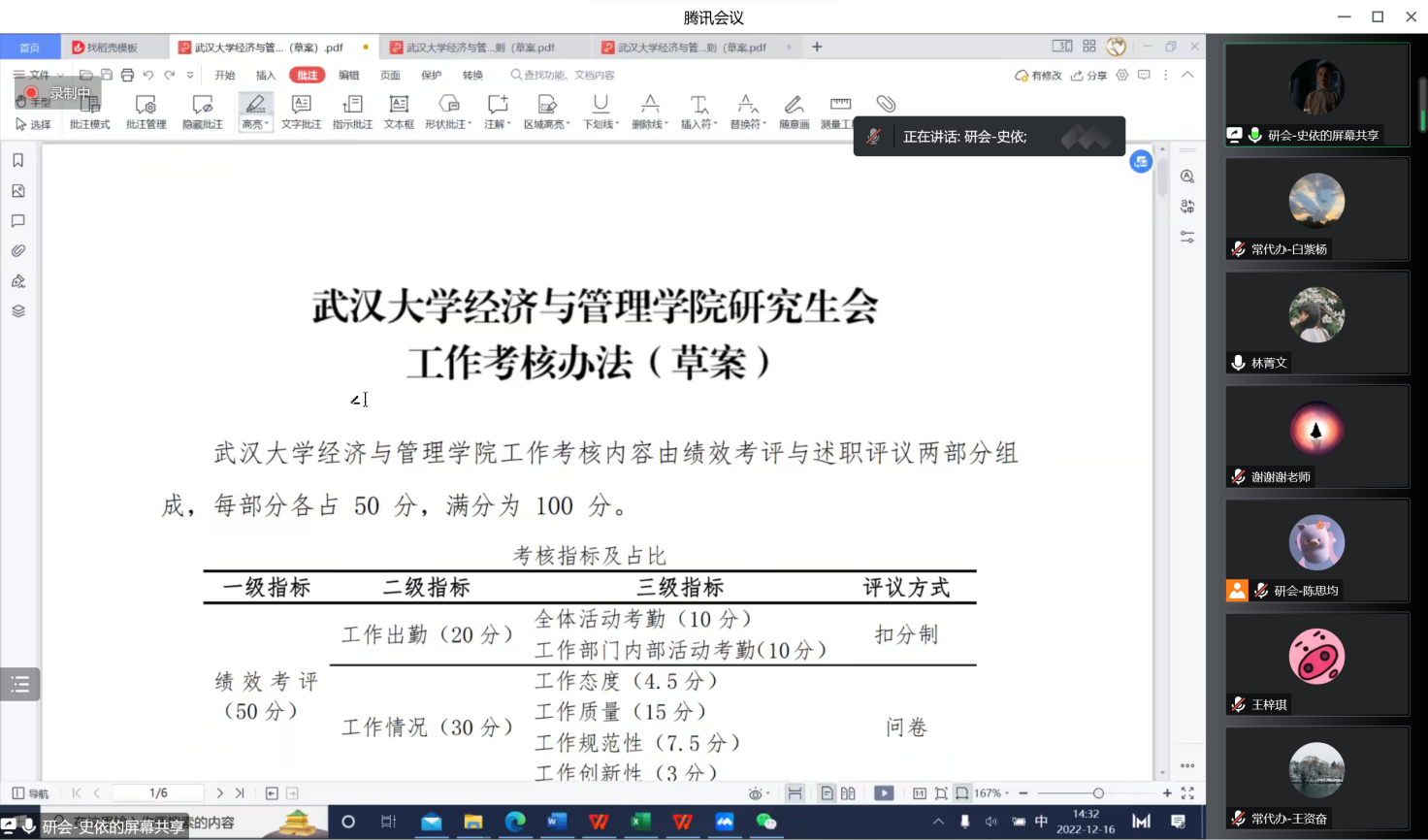 图6-7 听取并审议《威廉希尔研究生会工作考核办法(草案)》《威廉希尔研究生会工作情况考评实施细则(草案)》《威廉希尔研究生会述职评议实施细则(草案)》